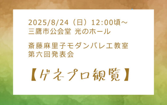 ゲネプロとは、本番前の「通しリハ … 続きを読む ゲネプロ観覧のご案内